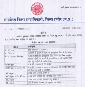 सीएम शिवराज सिंह चौहान शनिवार को दोपहर 1 बजकर 45 पर इंदौर पहुंच जाएंगे और विमानतल से वे सीधे दोपहर 2 बजकर 15 पर ए. आय. सी. टी. एस. एल. इंक्यूवेशन सेंटर पर जिला क्राइसेस मैनेजमेंट समिति के सदस्यों के साथ संवभाविय कोविड – 19 कि तीसरी लहर की तैयारियों की समीक्षा करेंगे।