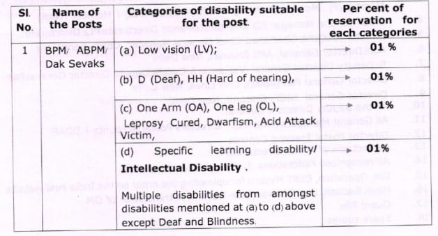 ग्रामीण डाक सेवकों की नियुक्ति में विकलांगों (विकलांग व्यक्तियों) के लिए आरक्षण नियम तय किए गए हैं। इस कार्यालय के दिनांक 26.02.2019 और 08.03.2019 के समसंख्यक पत्र का संदर्भ लें। जिसके द्वारा ग्रामीण डाक सेवकों की नियुक्ति में विकलांग (विकलांग व्यक्तियों) के लिए आरक्षण के निर्देश प्रसारित किए गए थे।