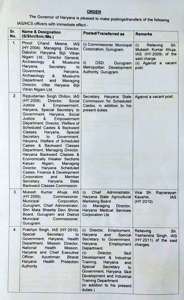 - आईएएस प्रदीप सिंह को एसडीएम गुरुग्राम।
