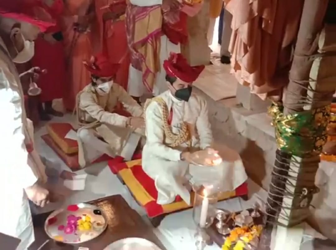 सिंधिया और उनके पुत्र राजसी पोशाक में देवघर पहुंचे। देवघर पहुँचते ही पारम्परिक रूप से उनका स्वागत किया गया। सिंधिया राजवंश के सरदारों, कर्मचारियों ने कोर्निश की परंपरा को निभाते हुए महाराज का अभिवादन किया। सिंधिया राजवंश के तुरई और शहनाई वादकों ने मधुर धुन बजाकर महारज का स्वागत किया।