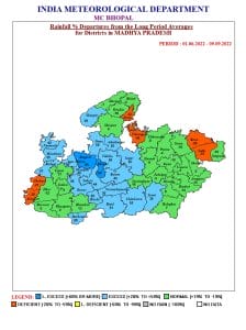 भोपाल, डेस्क रिपोर्ट। बंगाल की खाड़ी में कम दवाब का क्षेत्र विकसित होने के कारण हवा में नमी आना शुरू हो गई है। आज 9 सितंबर के बाद बारिश की गतिविधियों में तेजी आएगी और फिर झमाझम बारिश का दौर शुरू हो जाएगा।एमपी मौसम विभाग (MP Weather Department) ने आज शुक्रवार 9 सितंबर 2022 को सभी संभागों में गरज चमक के साथ बारिश की चेतावनी जारी की है। वही 23 जिलों में बिजली गिरने और चमकने की चेतावनी जारी की है।मध्यप्रदेश में 1 जून से अब तक करीब 40 इंच बारिश हो चुकी है। सामान्य रूप से अब तक 36 इंच बारिश होना चाहिए। यह सामान्य से 17% ज्यादा है।