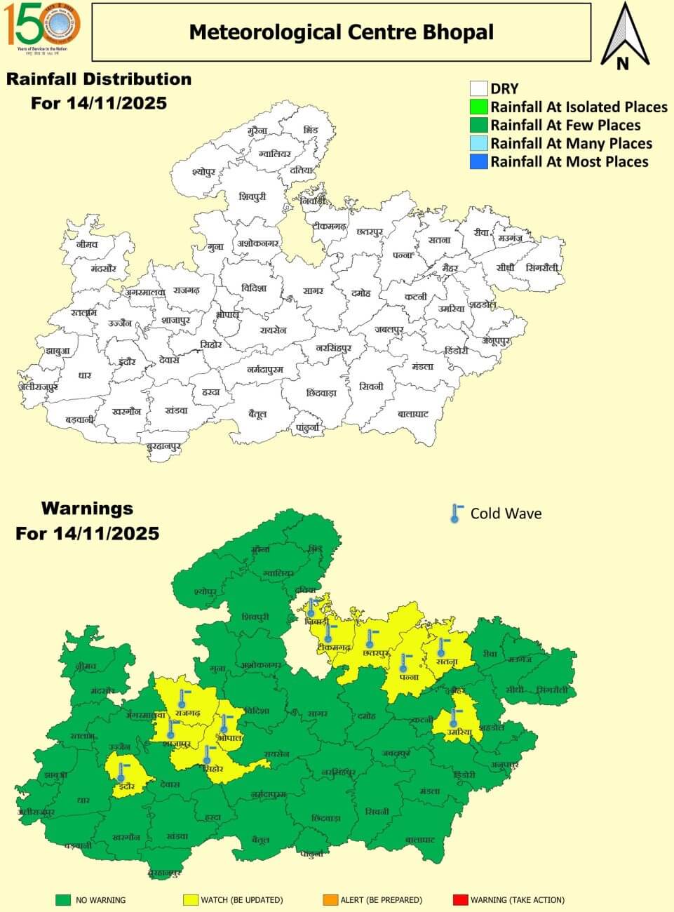 - भोपाल, राजगढ़ व इंदौर में तीव्र शीतलहर और बालाघाट अनूपपुर में दिनभर शीतल दिन की स्थिति बनी रही।