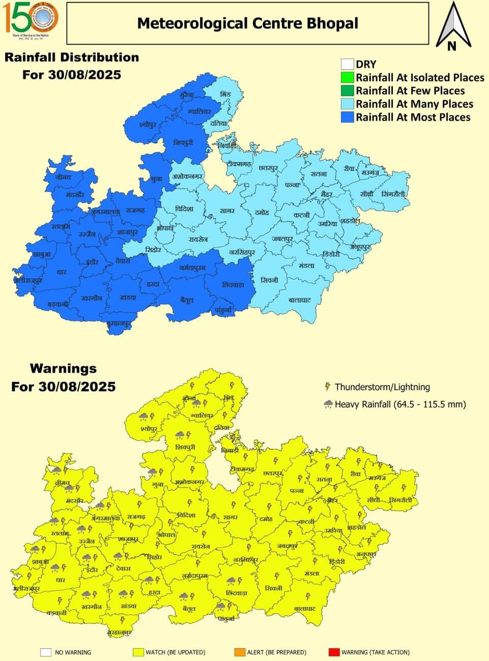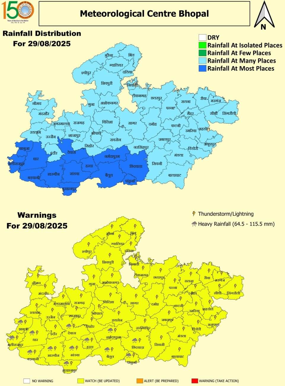 - मध्य प्रदेश में दीर्घावधि औसत से 23% अधिक वर्षा हुई है। पूर्वी मध्य प्रदेश में औसत से 25% और पश्चिमी मध्य प्रदेश 22% अधिक वर्षा हुई है। प्रदेश में अब तक औसत 35.6 इंच बारिश हो चुकी है। कोटा पूरा होने के लिए अब 1.4 इंच पानी की जरूरत है।