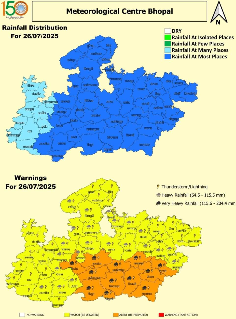 मध्य प्रदेश में अब तक औसत 21 इंच बारिश यानि 7.3 इंच बारिश( 53%) अधिक हुई है। अच्छी बात ये है कि 3 जिले निवाड़ी, टीकमगढ़ और श्योपुर में जुलाई में ही बारिश का कोटा पूरा गया है। इन जिलों में सामान्य से 15% तक ज्यादा पानी गिर चुका है।हालांकि इंदौर, उज्जैन, शाजापुर, बुरहानपुर और आगर-मालवा ने चिंता बढ़ा रखी है, क्योंकि यहां अबतक 10 इंच से भी कम पानी गिरा है।