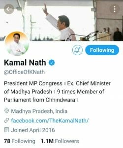 शुक्रवार की शाम होते होते सोशल मीडिया पर कमलनाथ ही कमलनाथ थे। दरअसल बी जे पी के वरिष्ठ नेता हितेश बाजपेई ने कमलनाथ की ट्विटर एकाउंट शेयर किया। जिसमें कमलनाथ के आगे कांग्रेस प्रदेश अध्यक्ष और पूर्व मुख्यमंत्री तो लिखा था लेकिन नेता प्रतिपक्ष के पद का उल्लेख नही था।