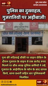 गुना, मध्य प्रदेश: पुलिस विभाग में उस वक्त हड़कंप मच गया जब गुना जिले में वाहन चेकिंग के दौरान एक स्कॉर्पियो से लगभग 1 करोड़ रुपये की नकदी बरामद हुई, लेकिन आरोप है कि पुलिस टीम ने 20 लाख रुपये लेकर गाड़ी को जाने दिया। मामला वरिष्ठ अधिकारियों तक पहुंचने के बाद अब सख्त कार्रवाई शुरू हो गई है, जिसमें थाना प्रभारी समेत चार पुलिसकर्मियों को तत्काल प्रभाव से निलंबित कर दिया गया है।