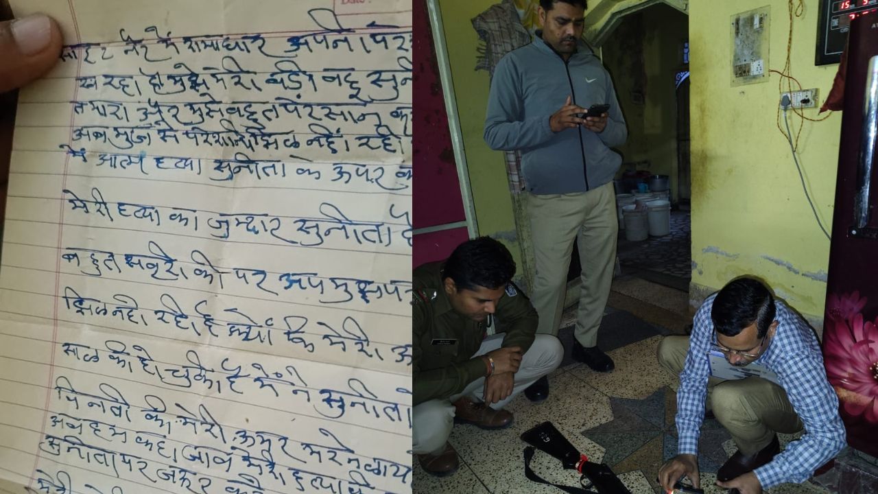 सुसाइड नोट में उन्होंने लिखा कि मैं अब इससे परेशान हो चुका हूँ मेरी उम्र हो गई है अब ये सहन नहीं होता, हालाँकि उन्होंने छोटी बहू की तारीफ करते हुए लिखा कि वो मेरा ध्यान रखती है लेकिन सुनीता के कारण में अब जिन्दा नहीं रहना चाहता और आत्महत्या कर रहा हूँ इसकी जिम्मेदार सुनीता होगी।