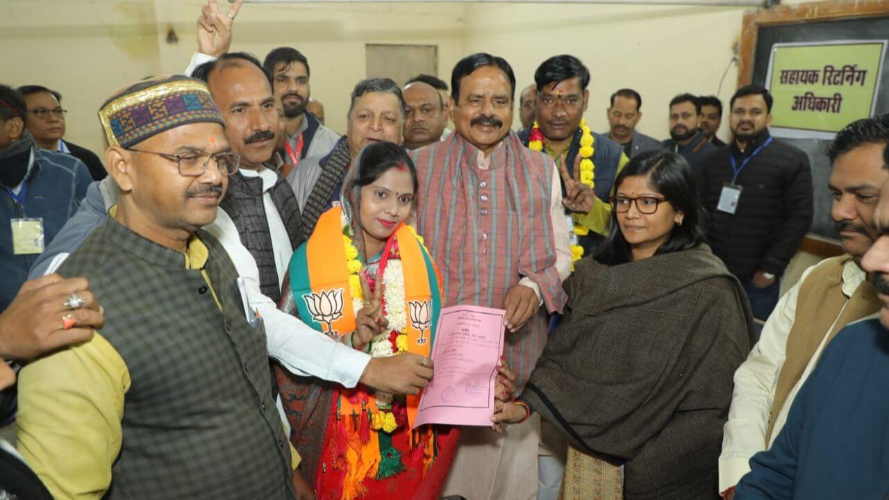BJP victory in Gwalior by-elections: ग्वालियर नगर निगम के वार्ड क्रमांक 39 के पार्षद पद के लिए हुए उप चुनाव में भाजपा की अंजली पलैया ने 1076 मतों से जीत दर्ज की है, उन्होंने कांग्रेस की शिवानी खटीक की शिकस्त दी, अंजली की जीत पर भाजपा के प्रदेश अध्यक्ष वीडी शर्मा ने उन्हें बधाई दी है।