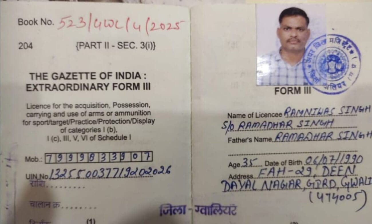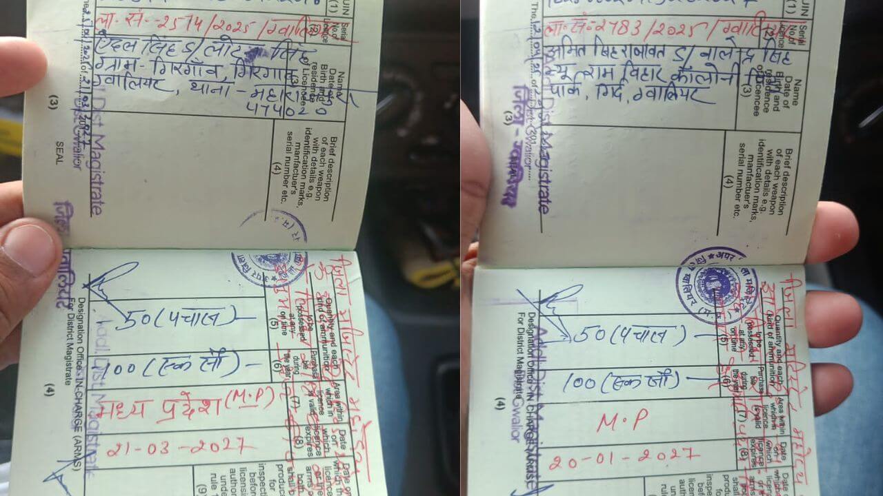 लाइसेंस जारी करने के पीछे किसी बड़े गिरोह के सक्रिय होने की बात कही जा रही है, लाइसेंस जिनके नाम जारी हुए वो तीनों व्यक्ति ग्वालियर के रहने वाले हैं उनके नाम एंदल सिंह निवासी ग्राम गिरगांव, अमित सिंह राजावत निवासी पिंटो पार्क रामनिवास सिंह निवासी दिन दयाल नगर है।