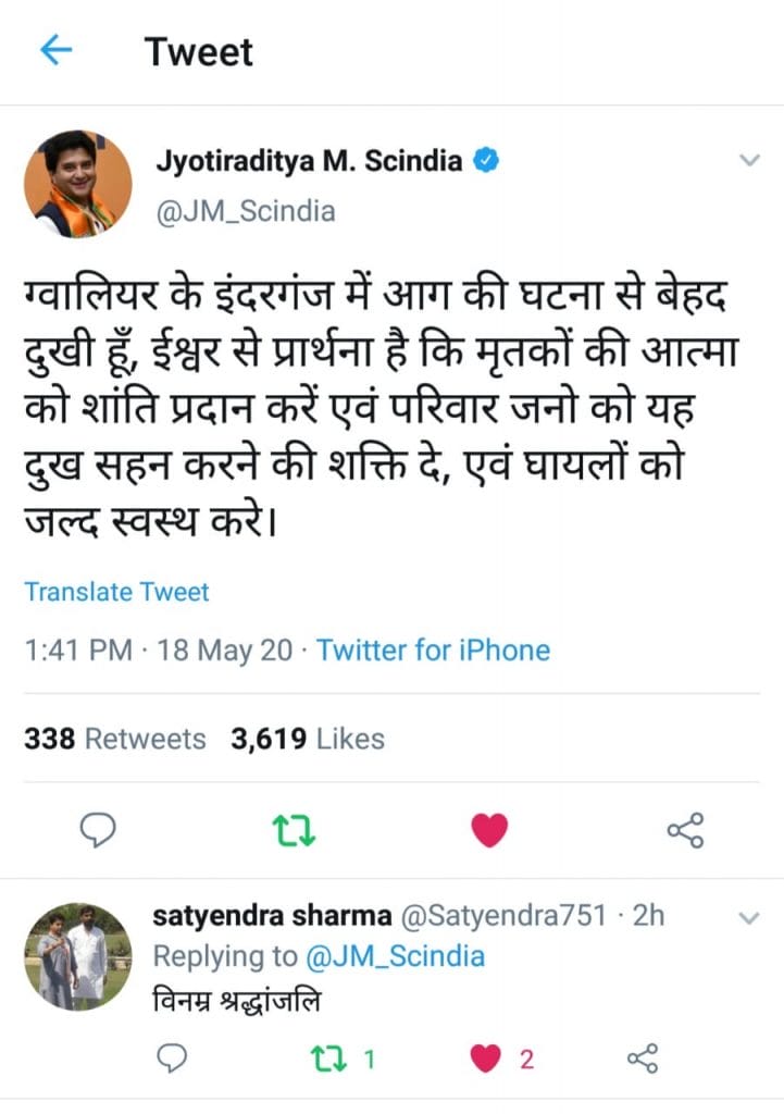 ग्वालियर । अतुल सक्सेना| शहर के पेंट कारोबारी गोयल परिवार के सात सदस्यों की मौत की खबर ने पूरे शहर को हिला कर रख दिया। घटना की सूचना मुख्यमंत्री शिवराज सिंह (Shivraj SIngh Chauhan) को मिलते ही उन्होंने जिले के अधिकारियों से बात की। घटना स्थल पर मौजूद पूर्व विधायक मुन्नालाल गोयल ने मुख्यमंत्री से बात की और घटना की भयावहता के बारे में बताया| जिसके बाद सीएम शिवराज ने परिजनों से बात की और प्रत्येक मृतक के परिजन को नियमानुसार 4-4 लाख रुपये की आर्थिक सहायता देने की घोषणा की। उधर पूर्व विधायक गोयल ने वरिष्ठ नेता ज्योतिरादित्य सिंधिया (Jyotiraditya Scindia) से भी बात की। सिंधिया ने घटना पर गहरा दुख जताते हुए परिजनों से बात की और उन्हें सांत्वना देते हुए हरसंभव मदद का भरोसा दिलाया।