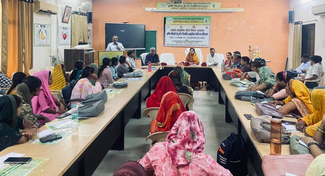कृषि विज्ञान केन्द्र परिसर ग्वालियर में प्राकृतिक खेती विषय पर किसान कल्याण तथा कृषि विकास विभाग पांच दिवसीय प्रशिक्षण कार्यक्रम आयोजित कर रहा है। जिसमें कृषि विज्ञान केन्द्र के विशेषज्ञ प्राकृतिक खेती करने के बारे में विस्तारपूर्वक जानकारी दे रहे हैं। बता दें प्राकृतिक खेती के लिये चयनित जिले के ग्रामों में 50 कृषि सखी चिन्हित की गई हैं। इन सभी कृषि सखी के माध्यम से किसानों को प्राकृतिक खेती करने के लिये प्रशिक्षित किया जाएगा, इससे ग्वालियर जिले में प्राकृतिक खेती के रकवे में वृद्धि होगी।