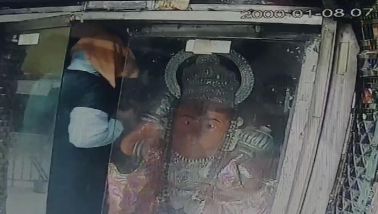 चोरी की इस घटना का सीसीटीवी फुटेज वायरल हो रहा है जिसमें चोर मास्क पहने हुए और पूरे शरीर को गाउन से ढंके हुए हैं, चोर आभूषण उतारने से पहले हनुमान जी के सामने हाथ जोड़ कर खड़े दिखाई दे रहे हैं।