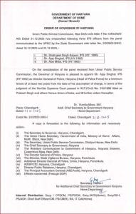 जारी आदेश के अनुसार, भारतीय पुलिस सेवा के अधिकारी गंगा राम पुनिया को भ्रष्टाचार निरोधक ब्यूरो के पुलिस अधीक्षक के रूप में तैनात किया गया है। वहीं, नरेंद्र बिजारनिया को करनाल के पुलिस अधीक्षक का प्रभार दिया गया है। इसके अलावा हरियाणा पुलिस सेवा के जीत बेनीवाल, सुशील कुमार, मोनिका, मुनीश सहगल, अनिल कुमार और शाकिर हुसैन को भी नई जिम्मेदारी सौंपी गई है।