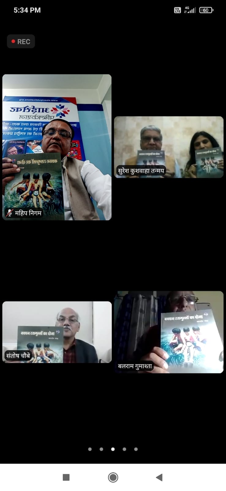 भोपाल, डेस्क रिपोर्ट वरिष्ठ साहित्यकार श्री सुरेश कुशवाहा तन्मय (Suresh Tanmay) के बालगीत संग्रह “बचपन रसगुल्लों का दोना” का ऑनलाइन लोकार्पण सम्पन्न हुआ। विश्वरंग, रवींद्र नाथ टैगोर विश्वविद्यालय एवं वनमाली सृजन पीठ भोपाल द्वारा, आइसेक्ट पब्लिकेशन द्वारा प्रकाशित पुस्तकों – उन्हें सुगंध से याद रखना चाहिए (लेखक – श्री चंद्रशेखर साकल्ले, इंदौर) एवं बचपन रसगुल्लों का दोना (लेखक – श्री सुरेश कुशवाह तन्मय, भोपाल) का लोकार्पण एवं पुस्तक चर्चा में कई साहित्यकारों ने भाग लिया।