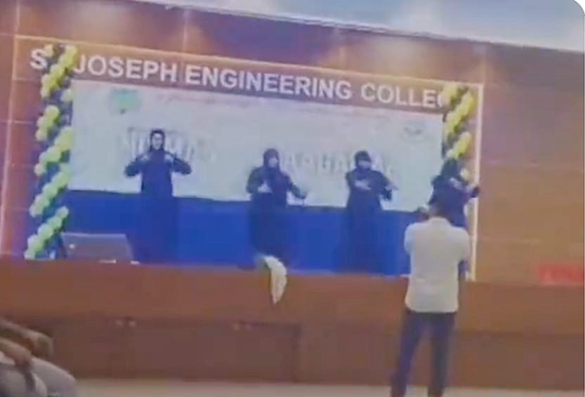 Controversy over dancing wearing burqa : कर्नाटक के एक कॉलेज में मुस्लिम छात्रों द्वारा बुर्का पहनकर किए गए डांस से बवाल खड़ा हो गया है। मंगलुरु (Mangaluru) में स्थित सेंट जोसेफ इंजीनियर कॉलेज (St. Joseph Engineering College) में ये कार्यक्रम हुआ था। यहा चार छात्रों ने बुर्का पहनकर बॉलीवुड गाने पर डांस किया, जिसका वीडियो अब वायरल हो रहा है। इस मामले पर विवाद होने के बाद में कॉलेज ने चारों छात्रों को सस्पेंड कर दिया है। इसी के साथ कॉलेज मैनेजमेंट मामले की जांच भी करवा रहा है।