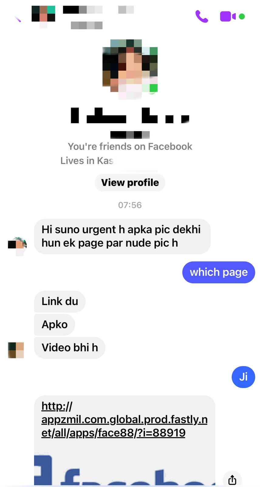 सायबर क्रिमिनल्स लोगों को लूटने ठगने के रोज नए नए तरीके इजाद कर रहे हैं। अब कुछ यूं हो सकता है कि आपके फेसबुक या वाट्सअप मैसेंजर पर किसी का मैसेज आएगा कि फलां-फला साइट पर आपके न्यूड फोटो देखे हैं। ज्यादातर ये तरीका लड़कियों और महिलाओं पर आजमाया जाता है क्योंकि न्यूड पिक्चर्स और सेक्स वीडियो की बात कहकर उन्हें डराना और फंसाना आसान होता है। जैसे ही हैकर्स किसी लड़की को कहते हैं कि आपका न्यूड फोटो या वीडियो देखा है और अगर लड़की उन्हें जवाब दे देती है या कुछ पूछ लेती है तो ये उनके पास एक लिंक भेज देते हैं।