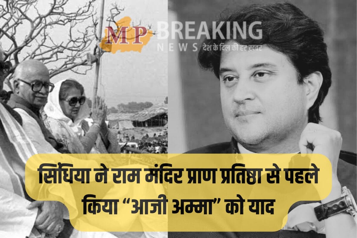 Jyotiraditya Scindia on Rajmata Scindia: 22 जनवरी को रामलला प्राण प्रतिष्ठा को लेकर देशभर में उल्लास है। इसी बीच केन्द्रीय मंत्री ज्योतिरादित्य सिंधिया ने आजी अम्मा राजमाता विजया राजे सिंधिया को याद करते हुए लेख लिखा है। जिसमें उन्होनें राम जन्मभूमि मंदिर के लिए “आजी अम्मा” के संघर्ष और योगदान के बारे में बताया है। उन्होनें अपने लेख में राजमाता विजया राजे सिंधिया को एक निर्णायक नेता और एक कुशल प्रशासक के रूप में उनके योगदान के बारे में बताया है।