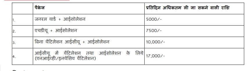 - आज जारी कोविड-19 संक्रमित रोगी के उपचार की इन पुनर्निर्धारित दरों को भी सभी निजी अस्पतालों जैसे नर्सिंग होम्स और चिकित्सा संस्थानों को अपने रजिस्ट्रेशन काउण्टर पर प्रदर्शित करना अनिवार्य होगा।