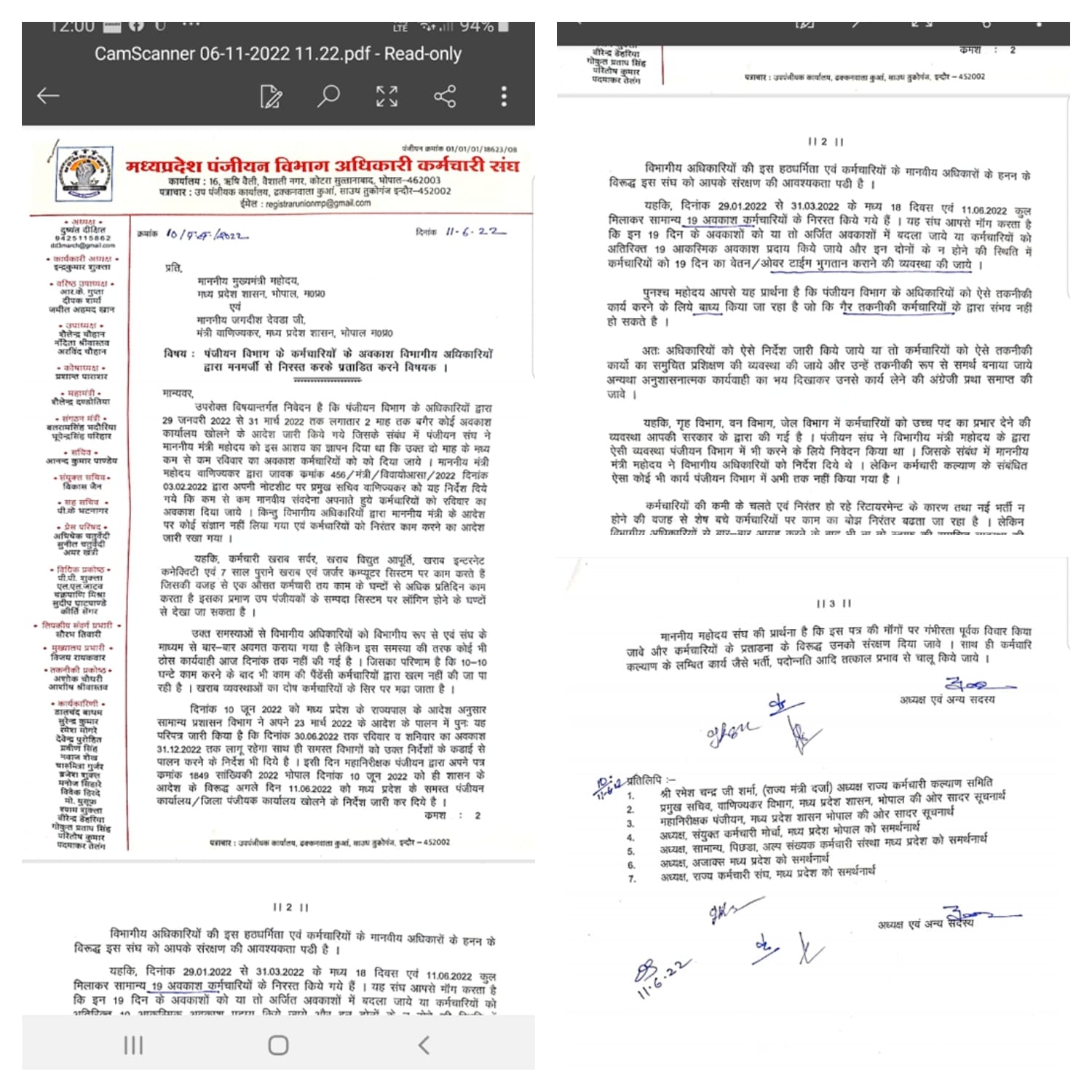 मध्यप्रदेश के पंजीयन विभाग के कर्मचारियों ने अपने ही अधिकारियों पर प्रताड़ित करने का आरोप लगाया है। दो महीने से इन्हे बिना कोई अवकाश दिये इनसे बंधुआ मजदूरों की तरह लगातार कार्य कराया जा रहा था। इस बात की शिकायत मुख्यमंत्री से भी की गई है। मैं @ChouhanShivraj
