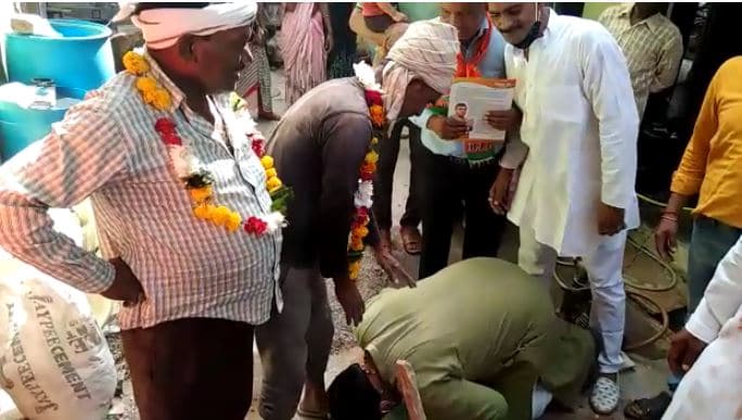 दरअसल प्रदेश के ऊर्जा मंत्री इन दिनों अपने विधानसभा क्षेत्र में जनसंपर्क अभियान पर हैं। रविवार को उन्होंने इसके तहत गदाईपुरा, मल्ल गढा, कल्लू काछी की बगिया आदि क्षेत्रों में जनसंपर्क किया। मंत्री तोमर जिस समय कल्लू काछी की बगिया क्षेत्र से गुजर रहे थे तो उन्हें एक निर्माणाधीन मकान में मजदूरों को काम करते देखा तो वे उनके पास गए। मंत्री ने मजदूरों का माला पहनाकर पहले सम्मान किया फिर उनके पैरों में अपना सिर रख कर ढोक लगा दिया। मंत्री की अचानक हुई इस प्रक्रिया से मजदूर हरिमोहन पटेल अचंभित रह गया। उसने ना सिर्फ मंत्री जी का हाथ जोड़कर अभिवादन किया बल्कि उनकी पीठ पर हाथ रखकर आशीर्वाद भी दिया। हरिमोहन ने कहा कि वो आश्चर्यचकित और बहुत खुश है। गौरतलब है कि ये पहला मौका नहीं हैं जब मंत्री प्रद्युम्न सिंह तोमर ने इस तरह की सहृदयता दिखाई हो। वे खुद को जनता का सेवक मानते हैं और इसीलिए सड़क पर झाड़ू लगाने, शौचालय साफ करने, नाला साफ करने या किसी के पैर छूने में उन्हें कोई झिझक नहीं होती। बहरहाल ये चुनाव का समय है और मंत्री के इस रूप को चुनाव से जोड़कर देखने वाले तो ये ही कह रहे हैं कि “भैया चुनाव है ये नेता जी से जो ना करवाये थोड़ा है”