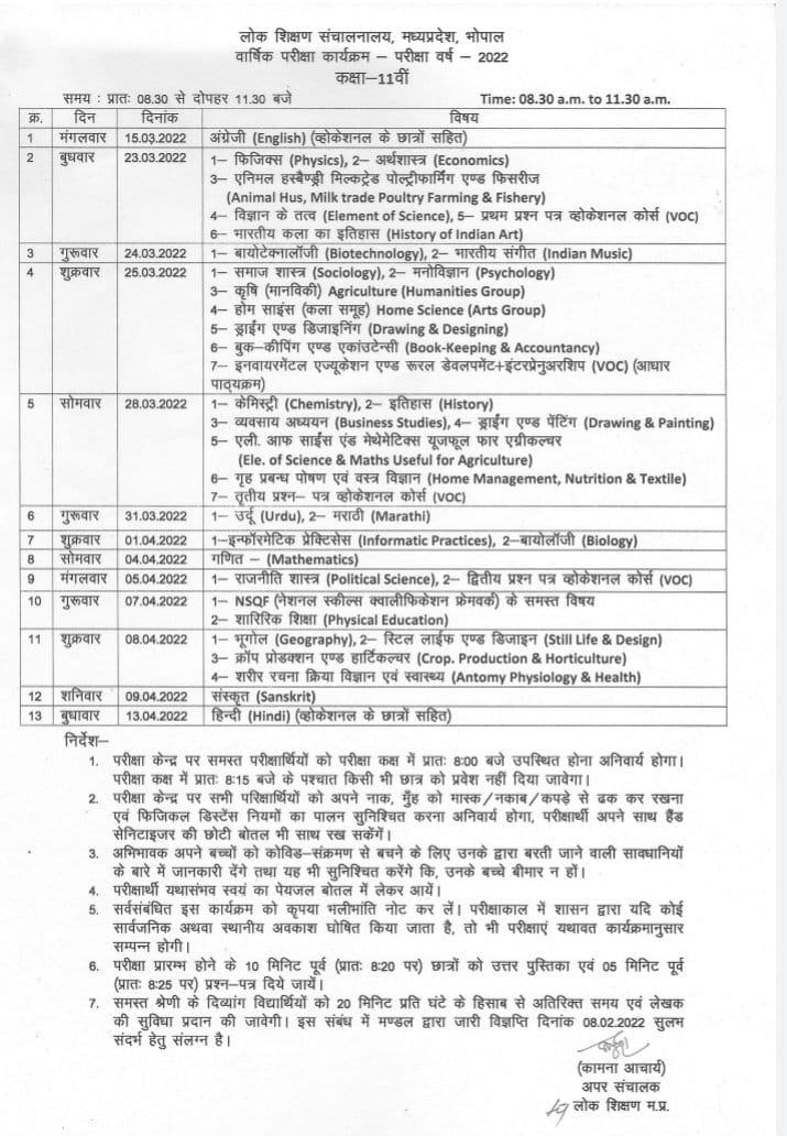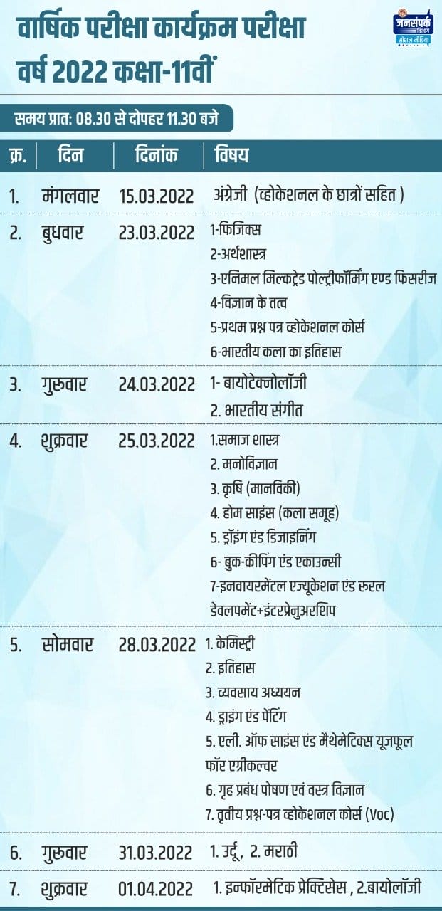 ➡️कक्षा 11वीं की वार्षिक परीक्षा 15 मार्च 2022 से आयोजित की जाएगी#SchoolEducationMP#JansamparkMP pic.twitter.com/gWC2ZFGk8y