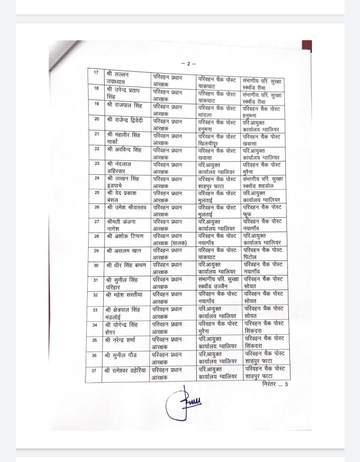 भोपाल, डेस्क रिपोर्ट। मध्यप्रदेश में तबादलों (MP Transfer) का दौर जारी है। आए दिन अधिकारी कर्मचारियों (officers) को नवीन पदस्थापना (New Posting) देकर इधर से उधर किया जाता है। इसी बीच परिवहन विभाग में बड़ी संख्या में अधिकारी कर्मचारियों को नवीन पदस्थापना सौंपी गई है। जिसकी लिस्ट उपलब्ध कराई जा रही है। देखे लिस्ट