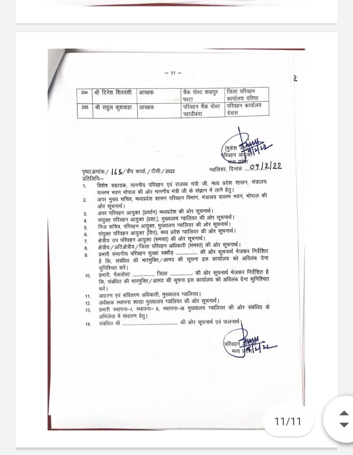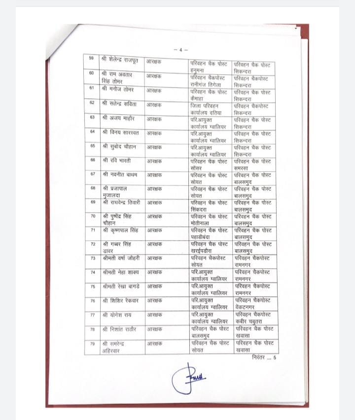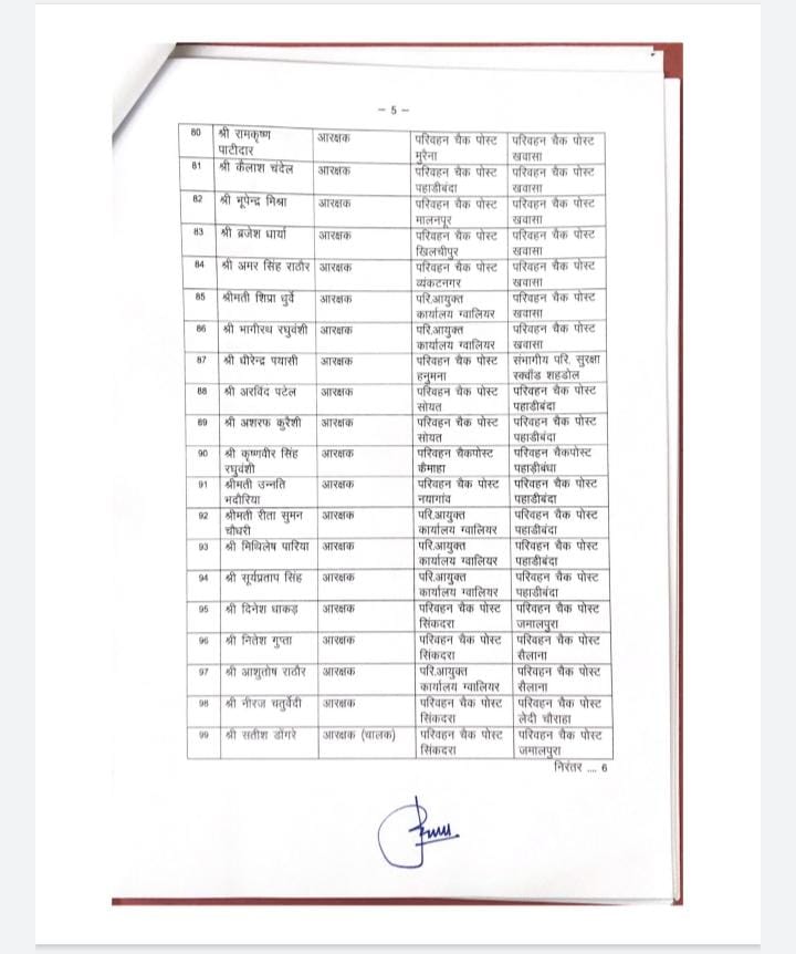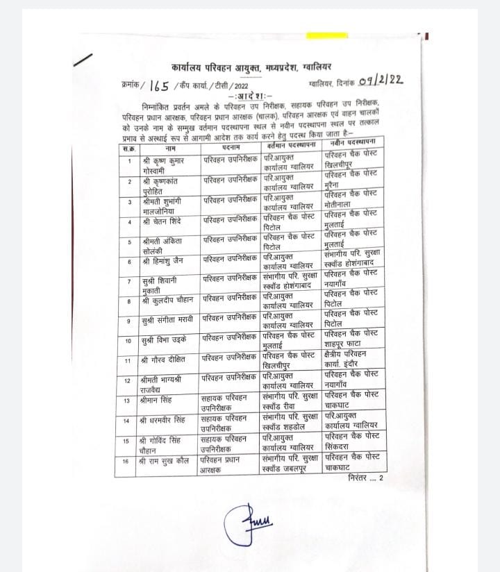 भोपाल, डेस्क रिपोर्ट। मध्यप्रदेश में तबादलों (MP Transfer) का दौर जारी है। आए दिन अधिकारी कर्मचारियों (officers) को नवीन पदस्थापना (New Posting) देकर इधर से उधर किया जाता है। इसी बीच परिवहन विभाग में बड़ी संख्या में अधिकारी कर्मचारियों को नवीन पदस्थापना सौंपी गई है।  जिसकी लिस्ट उपलब्ध कराई जा रही है। देखे लिस्ट