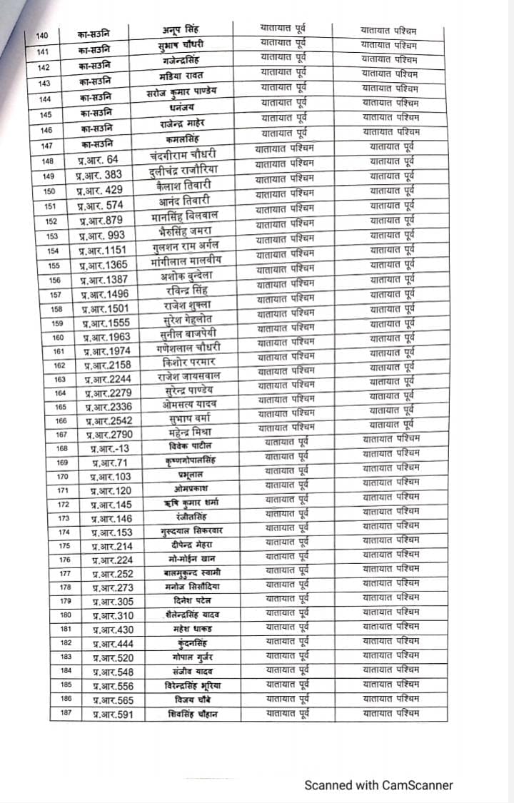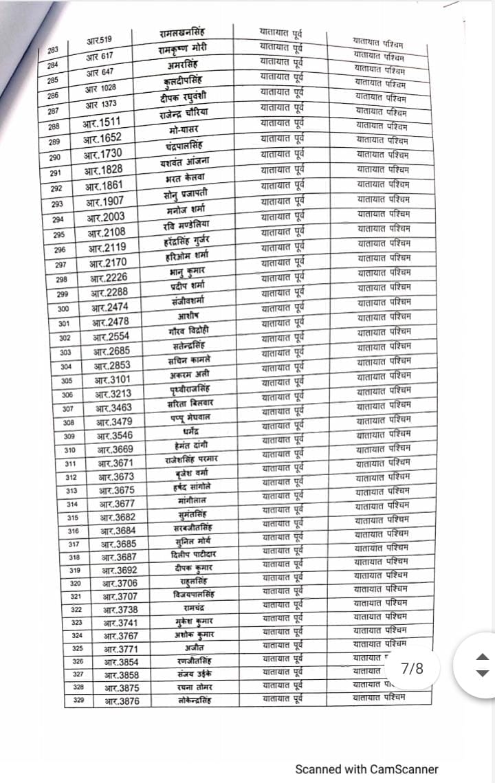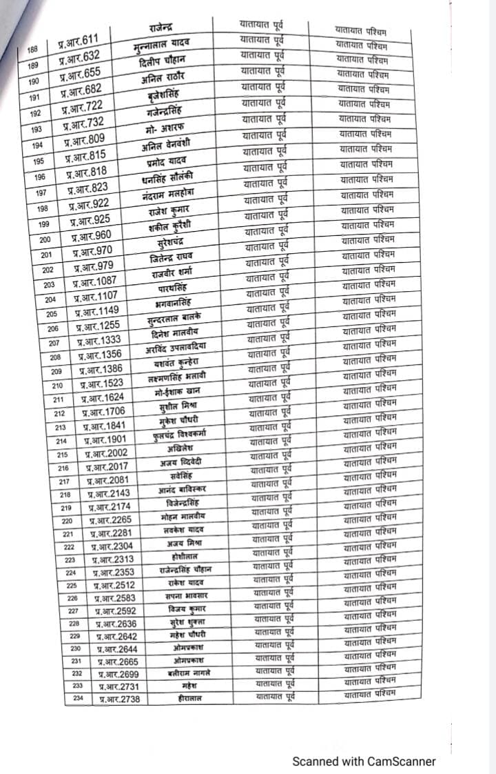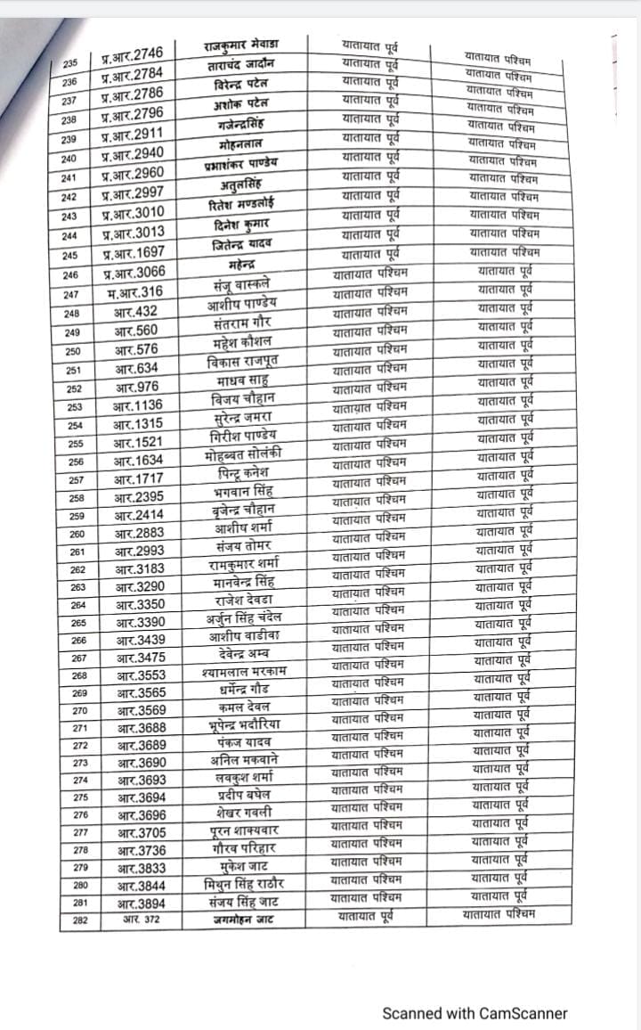 भोपाल, डेस्क रिपोर्ट। मध्य प्रदेश (MP) राज्य शासन द्वारा शनिवार को थोकबंद तबादले (Transfer) किए गए हैं। इनमें अलग अलग पद के अफसरों को बदला गया है। ट्रैफिक के प्रधान आरक्षक, आरक्षक सहित ASI को इधर से उधर किया गया है। शासन ने इस संबंध में आदेश जारी किए गए हैं। जिसमे करीब 332 अफसरों की नवीन पदस्थापना की गई है। यहाँ देखे लिस्ट