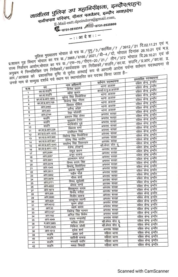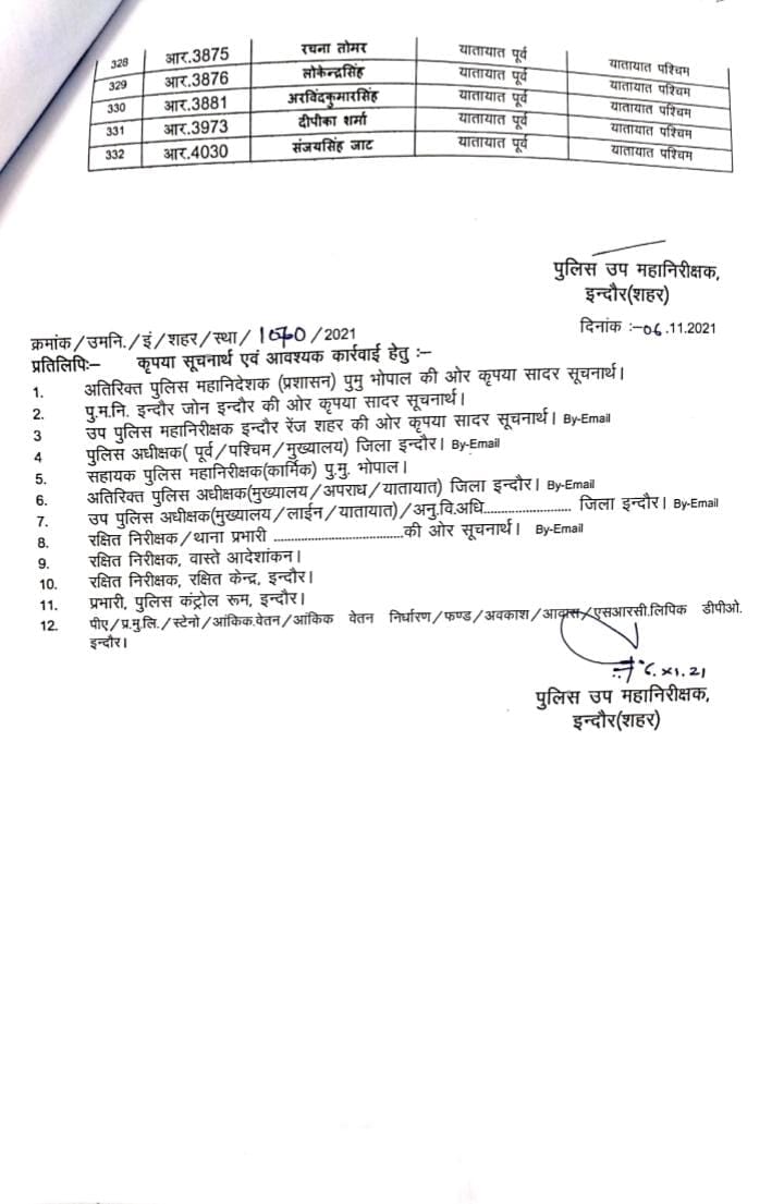 MP में हुए पुलिसकर्मियों के तबादले, 332 को नवीन पदस्थापना, देखे लिस्ट