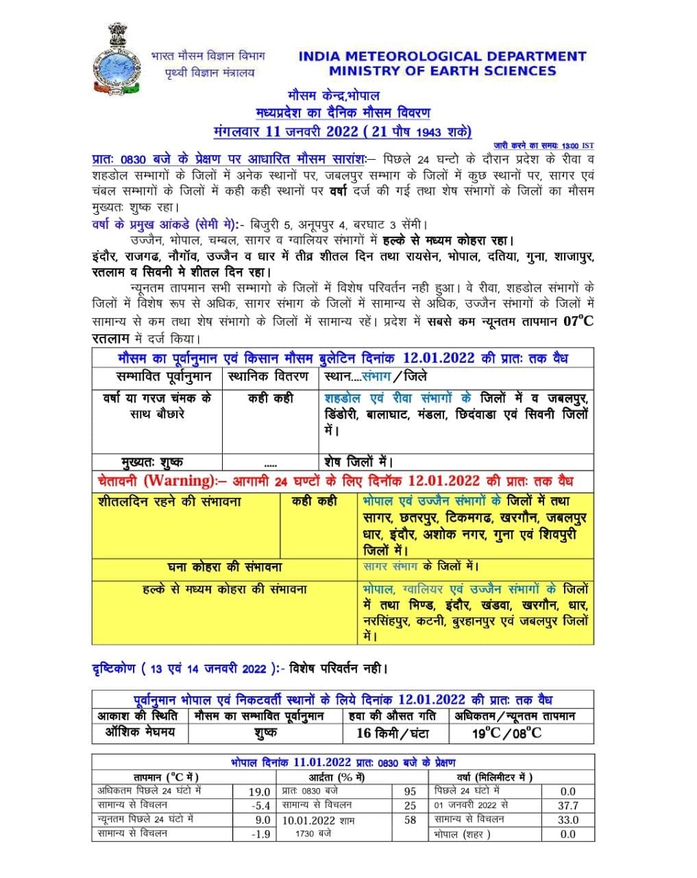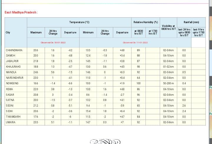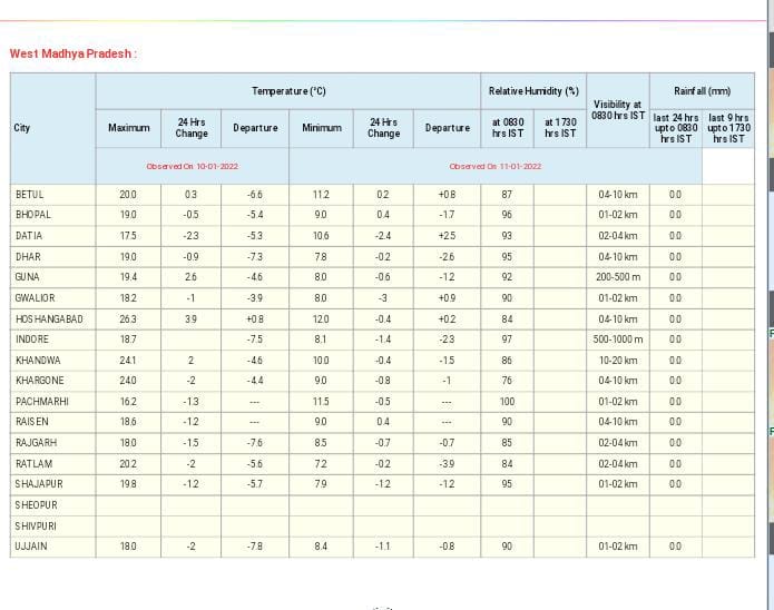 MP Weather Update Today 11 January 2022