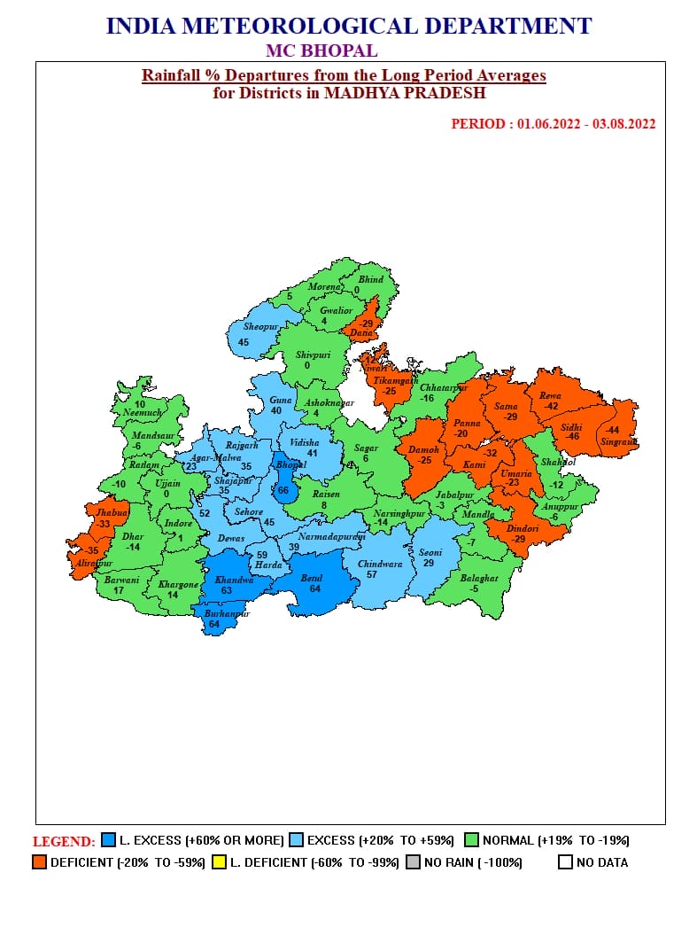 एमपी मौसम विभाग (MP Weather Update ) के अनुसार, अरब सागर में चक्रवाती घेरा बनने के कारण 3 अगस्त से इंदौर में हल्की बारिश होगी और फिर 6 अगस्त तक बंगाल की खाड़ी में कम दबाव का क्षेत्र बनने के बाद बारिश की गतिविधियों में तेजी आएगी।वही ग्वालियर में बंगाल की खाड़ी में एक कमजोर कम दबाव का क्षेत्र विकसित हो रहा है, जिससे 4-5 वर्षा की संभावना बनेगी।पांच अगस्त को मानसून ट्रफ लाइन अपनी सामान्य स्थिति में आ जाएगी,जिससे जबलपुर समेत कई संभागों में वर्षा की गतिविधियों में तेजी आएगी।