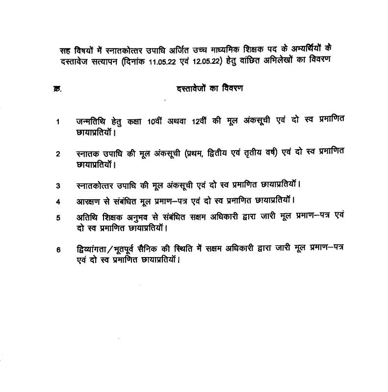 सह-विषय में स्नातकोत्तर उपाधि की पात्रता वाले अभ्यर्थियों का दस्तावेज सत्यापन