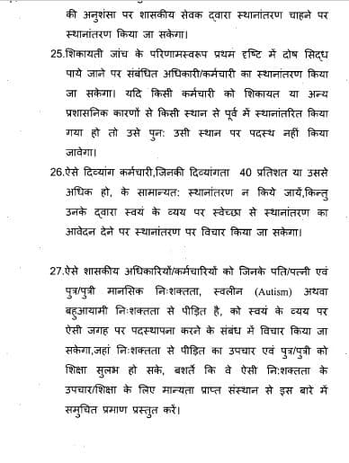 दरअसल, नई पॉलिसी के मुताबिक, जिन अधिकारियों व कर्मचारियों का रिटायरमेंट 1 साल के भीतर होना है, उनका ट्रांसफर नहीं होगा। वही जिनके आपराधिक प्रकरण या विभागीय जांच लंबित है, उनके ट्रांसफर नहीं होंगे।इसके अलावा पति-पत्नी का एक साथ ट्रांसफर स्वयं के व्यय पर होगा।
