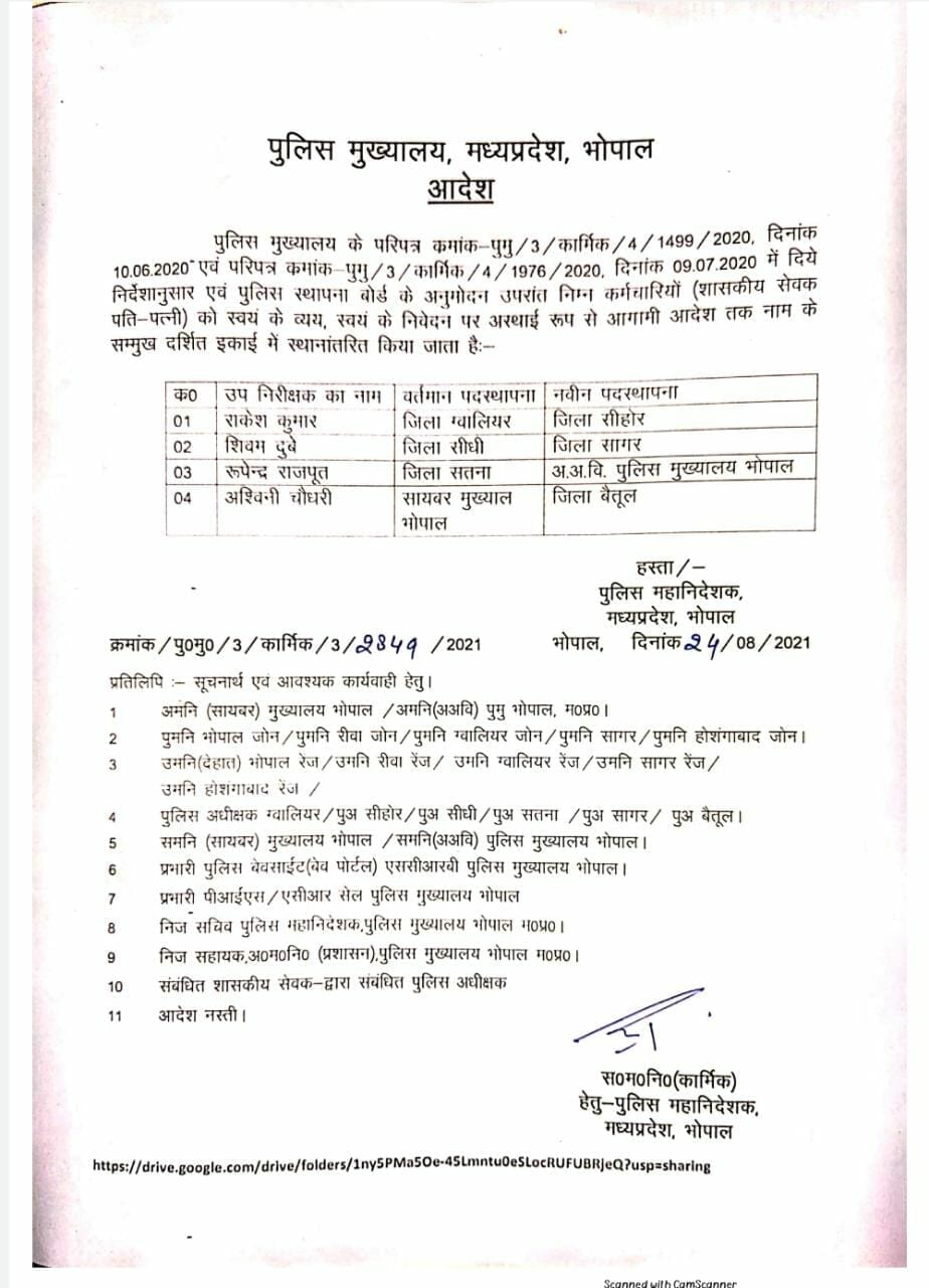 Transfer : मध्य प्रदेश में पुलिसकर्मियों के तबादले, यहां देखें लिस्ट
