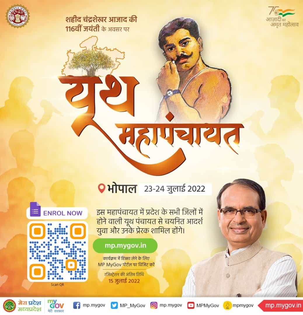आज ऐतिहासिक दिन है। अमर हुतात्मा चंद्रशेखर आज़ाद की 116वीं जयंती पर 'यूथ महापंचायत' का आज भोपाल में आयोजन हो रहा है..#Thoughtoftheday #SaturdayThoughts #SaturdayMotivation #YouthMahaPanchayat #MadhyaPradesh pic.twitter.com/blrS0kSsEz