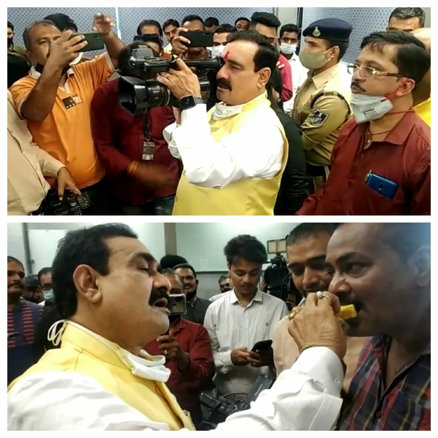 भोपाल, डेस्क रिपोर्ट। 19 अगस्त को वर्ल्ड फोटोग्राफी डे (World Photography Day) मनाया जाता है। इस अवसर पर मध्य प्रदेश के गृह मंत्री डॉ नरोत्तम मिश्र ने कहा कि मेरा हमेशा से मानना है कि किसी भी परिस्थिति में खबर बनाने में रिपोर्टर या एंकर के साथ फोटोग्राफर बराबर परिश्रम करता है। लेकिन खबर की सराहना के वक्त अक्सर रिपोर्टर का नाम ही लिया जाता है। फोटोग्राफर हमेशा पर्दे के पीछे रहता है और उन्हें उचित सम्मान नहीं मिल पाता। इस मौके पर नरोत्तम मिश्रा ने खुद कैमरा थामकर फोटोग्राफर और कैमरामेन का काम समझने की कोशिश भी की। इसी के साथ उन्होने खुद अपने हाथों से उपस्थित कैमरामैन को मिठाई खिलाकर उनका अभिवादन किया।