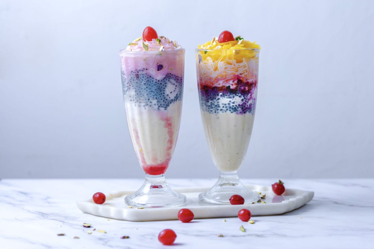 सेवई फालूदा: इसमें सेवई, दूध, चाशनी और सब्जा बीज होते हैं। सेवई को पानी में उबालकर तैयार किया जाता है और फिर उसे ठंडा कर दूध के साथ मिलाया जाता है। इसके बाद इसमें चाशनी डाली जाती है और सब्जा बीज टॉपिंग के रूप में डाले जाते हैं। यह एक शीतल मिठाई होती है जो गर्मियों में बहुत ही लोकप्रिय है।