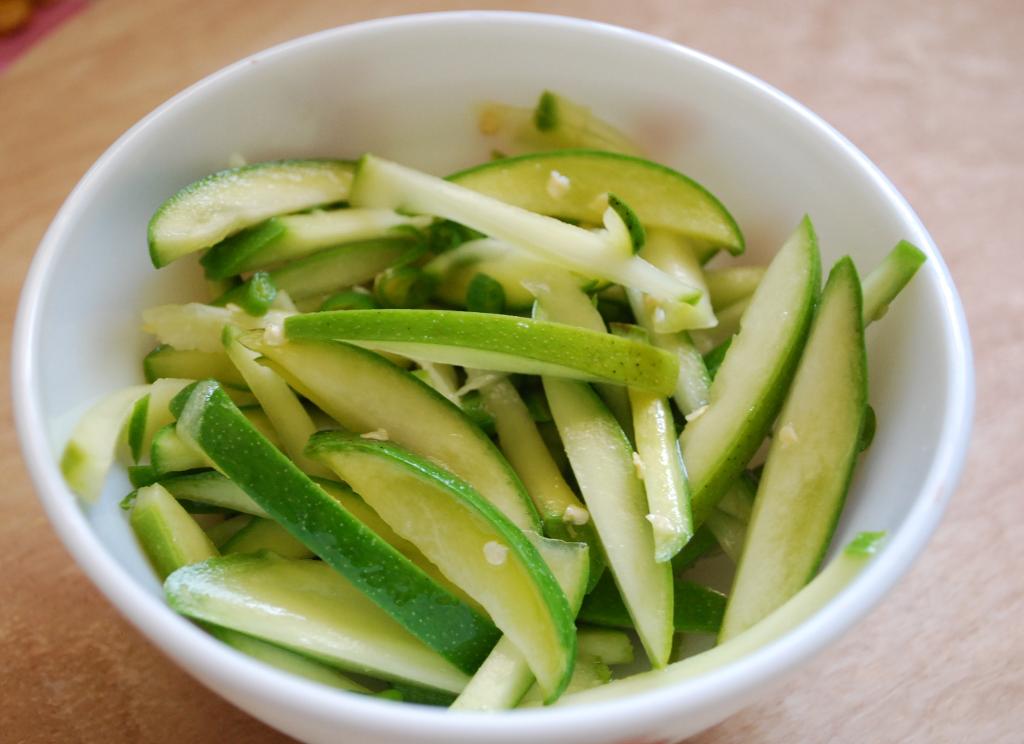 - कच्चे आम को छीलकर लंबे-लंबे टुकड़ों में काट लें.