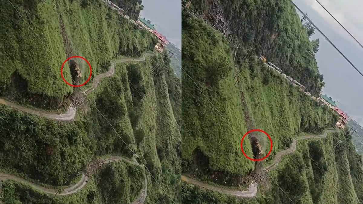 हिमाचल प्रदेश की राजधानी शिमला के कुमारसेन क्षेत्र में नेशनल हाईवे-5 पर मलबा हटाने के दौरान एक जेसीबी 300 मीटर गहरी खाई में गिर गई। यह घटना कैमरे में कैद हुई, जिसमें जेसीबी पहाड़ी रास्तों से टकराते हुए नीचे गिरती दिखाई दी। हादसे का कारण अचानक गिरा एक पत्थर बताया जा रहा है, जिसके चलते मशीन अनियंत्रित हो गई।