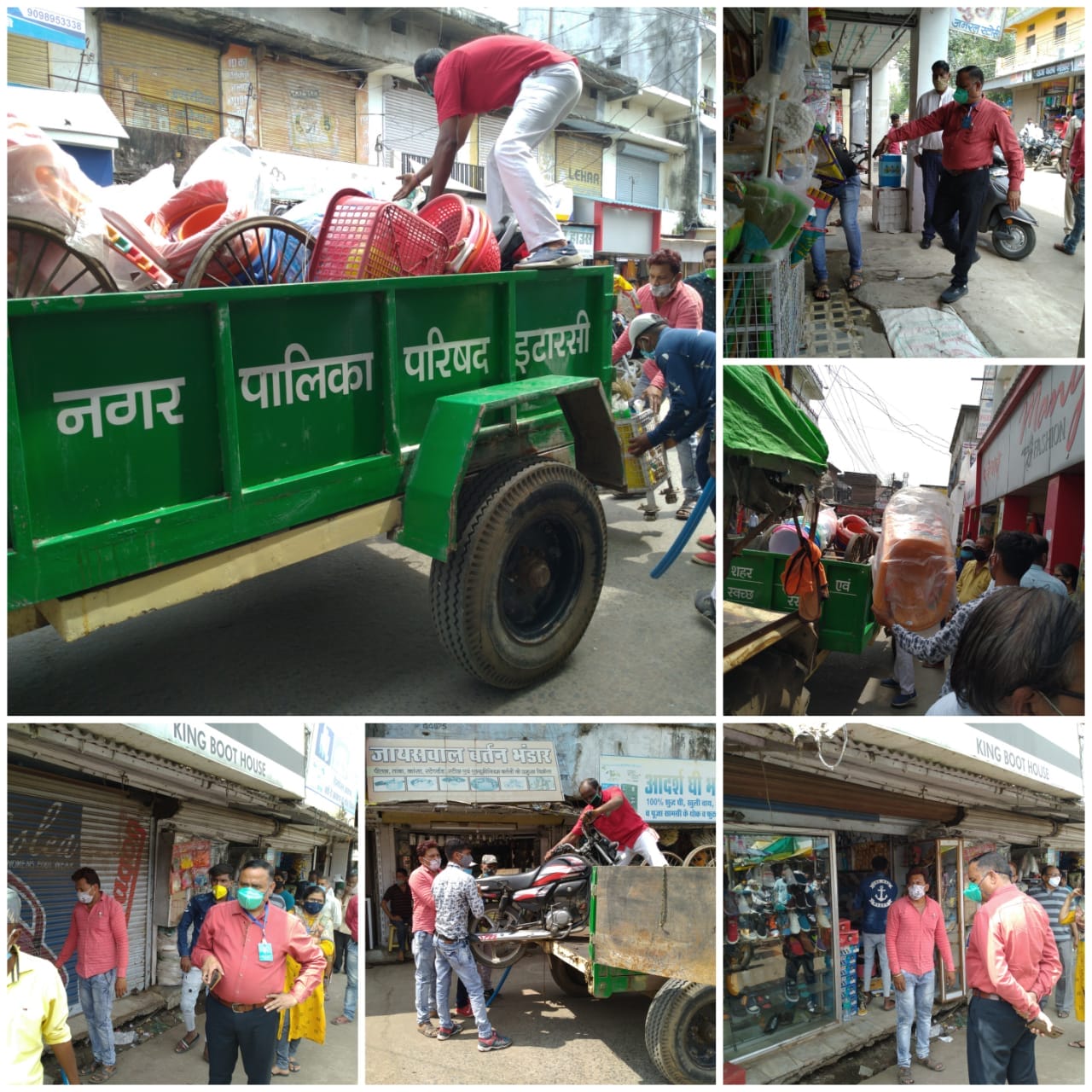 इटारसी, राहुल अग्रवाल। लगातार चल रही अतिक्रमण मुहिम में आज प्रशासन थोड़ा सख्त दिखाई दिया। दुकानों के बाहर रखे सामान को जब्त करने के साथ ही सड़क पर खड़े वाहनों पर भी चालानी कार्रवाई की गई।