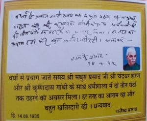काका कालेलकर ने भी साल 1935 में 13 जुलाई में प्रयाग जाते समय 2 घंटे रुके ओर आराम किया था। वहीं सुचेताबेन कृपलानी एक भारतीय स्वतंत्रता सेनानी और राजनीतिज्ञ थी ये उत्तर प्रदेश की मुख्य मंत्री बनी और भारत की प्रथम महिला मुख्यमंत्री थी वे प्रसिद्ध गांधीवादी नेता आचार्य कृपलानी की पत्नी थीं। वो साल 1945 में 17 नबंर को दिल्ली जाते समय 2 दिन रुकी थी। रविशंकर शुक्ल 1 घण्टे यहां रुके थे। गोठी धर्मशाला आज भी यात्री के लिये खुली हुई है और जैसी पहले थी वैसी ही अभी भी है।