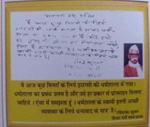 यह धर्मशाला इटारसी के वरिष्ठ गांधीवादी विचारक समीर मल गोठी के परिवार का है। धर्मशाला का इतिहास 1907 के करीब का है। समीरमल के पौत्र हनी गोठी बताते है कि धर्मशाला बनाने का उद्देश्य इटारसी स्टेशन पर आने जाने वालो को अच्छा आश्रय मिल सके इसलिए बनाया गया था क्योंकि उस जमाने मे होटल लॉज नही हुआ करते थे। खास बात यह थी कि धर्मशाला में जात पात नही मानते थे यही बात बापू को भा गई थी। उन्होंने अपने लेटर में इसका स्पष्ट उल्लेख किया है कि इस धर्मशाला में हम लोगों को आश्रय दिया गया इसके लिए हम सब संचालकों का आभार मानते है। यह जानकर की स्वच्छता से रहने बाले हरिजनों को भी यहां स्थान मिलता है बहुत हर्ष हुआ