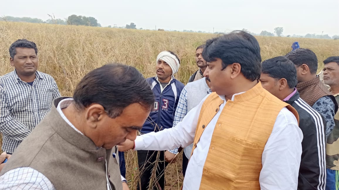 क्षेत्रीय विधायक श्री संजीव सिंह कुशवाह एवं कलेक्टर श्री छोटेसिंह ने विधानसभा क्षेत्र भिण्ड के कई ग्रामो मेें ओला से प्रभावित सरसो एवं गेहूॅ की फसलों मे हुए नुकसान का क्षेत्र का दौरा कर जायजा लिया गया। साथ ही राजस्व अधिकारियो से चर्चा कर सर्वे कार्य शीघ्र प्रारंभ कर रिपोर्ट तैयार करने के निर्देश दिए। जिससे राहत राशि शीघ्र ही वितरित की जा सके। विधायक श्री संजीव सिंह कुशवाह ने समस्त हलकों के पटवारियों को निर्देश दिया यदि नुकसान 50 से 60% है तो उसे शतप्रतिशत नुकसान ही लिखें।