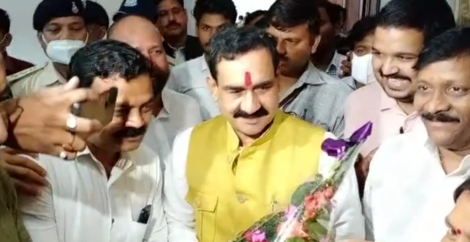 मंत्री नरोत्तम मिश्रा ने कहा कि राहुल गांधी (Rahul Gandhi) वैष्णो देवी की यात्रा कर रहे हैं, केजरीवाल (Kejriwal) हनुमान चालीसा का पाठ कर रहे हैं, ममता बनर्जी (Mamata Banerjee) दुर्गा मंत्र पढ़ रही है और मायावती (Mayawati) के मंच से स्वस्तिवाचन हो रहा है जिसके लिए पीएम मोदी को धन्यवाद जाना चाहिये। वहीं उन्होंने राहुल गांधी को इच्छाधारी हिंदू बताया और कहा कि वो अपनी सुविधा के अनुसार धर्म को ग्रहण करते है, छोड़ते रहते हैं। वो कभी टोपी तो कभी टीके के साथ चलते है।