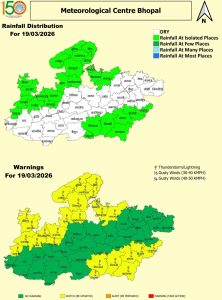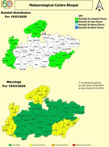 मौसम विज्ञान केन्द्र, भोपाल की दैनिक रिपोर्ट के मुताबिक, वर्तमान में एक पश्चिमी विक्षोभ,चक्रवातीय परिसंचरण और एक ट्रफ सक्रिय है। पश्चिमी जेट स्ट्रीम, जिसमें मुख्य हवाओं की गति लगभग 115 नॉट है, 12.6 किमी की ऊंचाई (माध्य समुद्र तल से ऊपर) पर पश्चिमी भारत के ऊपर सक्रिय है। 14 मार्च को सक्रिय हुए पश्चिमी विक्षोभ का असर तेज ना होने के कारण 16 और 17 मार्च को बारिश की संभावना कम है। एक नया पश्चिमी विक्षोभ 17 मार्च 2026 की रात से उत्तर-पश्चिम भारत को प्रभावित करने की संभावना है। इसके असर से 18-19 मार्च को पूर्वी और दक्षिणी हिस्सों में बादल छाने के साथ कहीं-कहीं बारिश की संभावना जताई गई है।