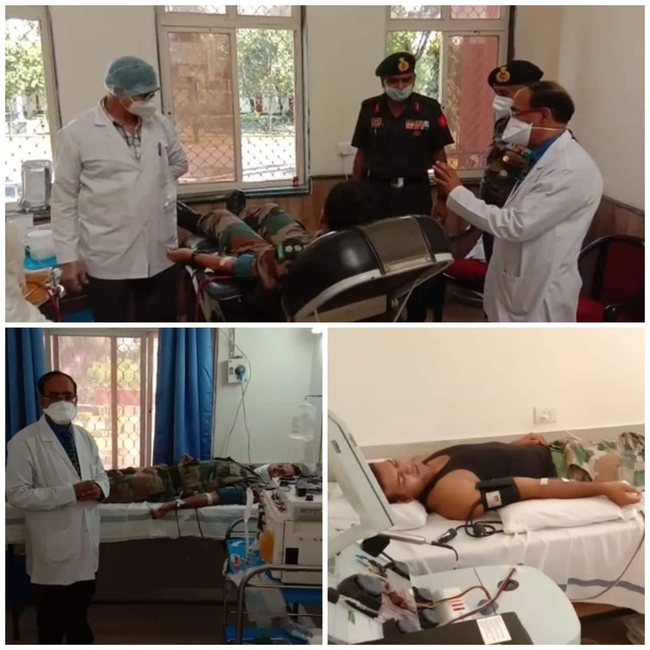 इंदौर से सटे महू मिलिट्री हॉस्पिटल में इंदौर के एम.वाय. अस्पताल के सहयोग से देश का सबसे बड़ा ब्लड प्लाज्मा डोनेशन कैंप लगाया गया, जहां सेना के अधिकारियों की अभिप्रेरणा से न सिर्फ सेना के जवान और अधिकारियों ने ब्लड प्लाज्मा डोनेट किया बल्कि आम लोगों ने भी ब्लड प्लाज्मा डोनेट किया। इससे उनके शरीर मे विकसित एंटी बॉडीज का उपयोग कोरोना से पीड़ित गम्भीर मरीजों का इलाज किया जा सकेगा, खासकर उन सीनियर सिटीजन्स का जो कोविड की जंग में खुद को असहज महसूस करते हैं। शनिवार को आयोजित ब्लड प्लाज्मा डोनेशन कैम्प में करीब 22 जवानों व अधिकारियों ने ब्लड प्लाज्मा डोनेट किया। वहीं 8 सिविलियन्स ने भी मिलट्री हॉस्पिटल महू में ब्लड प्लाज्मा डोनेट कर जता दिया है कि कोविड की जंग में आम आदमी भी सेना के जवानों और अधिकारियों के साथ हैं।