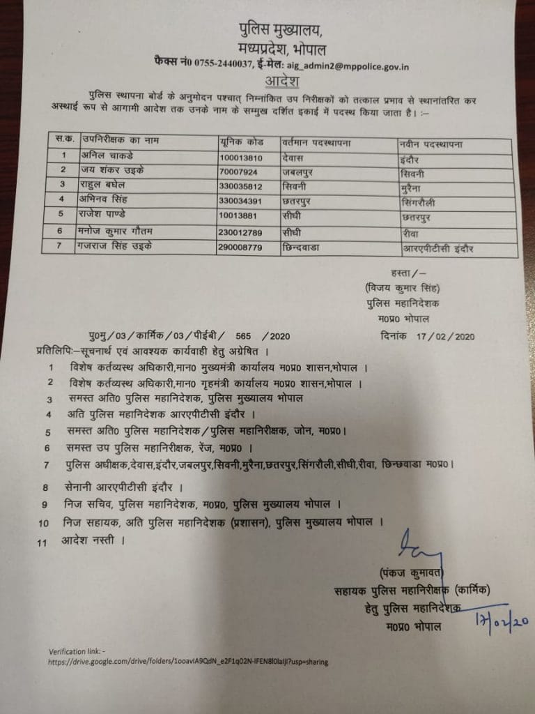 पुलिस विभाग में टीआई और एसआई के तबादले किये गए हैं। सूची यहां देखिये –