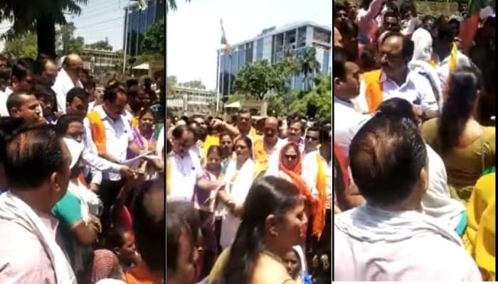 दरअसल नगर निगम ने शाही नाला इलाके में प्रधानमंत्री आवास योजना के तहत बने मकानों को तोड़ने के लिए घरों में नोटिस भेजे हैं। इस नोटिस के खिलाफ आज सुबह जिला भाजपा अध्यक्ष जीएस ठाकुर के नेतृत्व में सैकड़ों कार्यकर्ता भाजपा महापौर स्वाति गोडबोले को ज्ञापन देने पहुंचे थे, लेकिन तबतक वह ऑफिस नही पहुंची थी, तब जिलाध्यक्ष कार्यकर्ताओं संग उनके सरकारी बंगले पर पहुंचे।