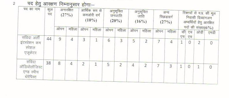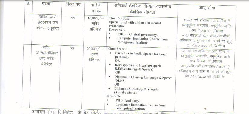 - अर्ली संविदा इंटरवेंशन कम स्पेशल एजुकेटर के 44 पद।