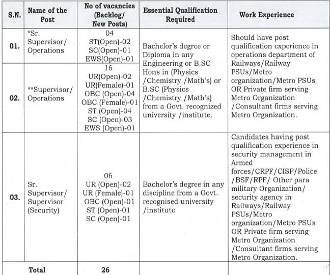 - सीनियर सुपरवाइजर/ सुपरवाइजर (सिक्योरिटी) पदों पर आवेदन के लिए अभ्यर्थी का किसी भी स्ट्रीम से स्नातक उत्तीर्ण होना आवश्यक है ।